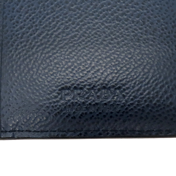 プラダ PRADA ロゴ バイカラー ブラック×ネイビー レザー 長財布 シルバー金具 黒 紺 カード入れ