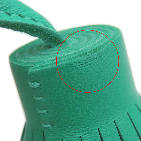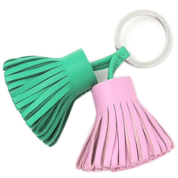エルメス HERMES カルメン ウノドス ミント×モーヴシルべストル ラムスキン キーリング シルバー金具 緑 ピンク フリンジ キーホルダー