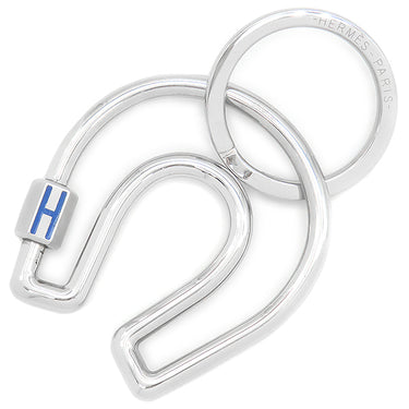 エルメス HERMES フェール ア シュヴァル シルバー×ブルーサフィール ステンレススチール キーホルダー シルバー金具 カラビナ キーリング 蹄鉄