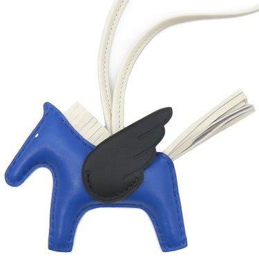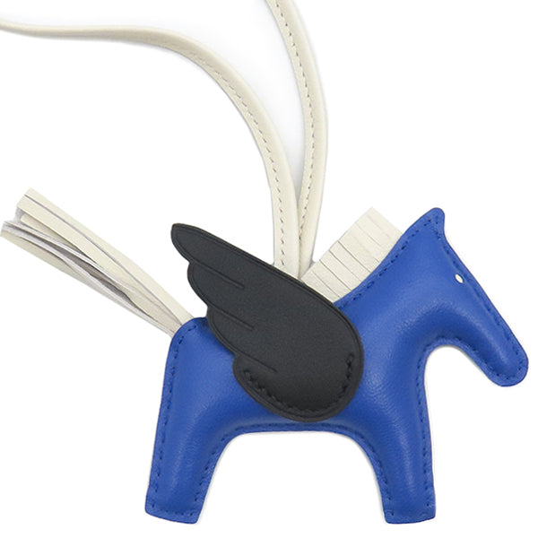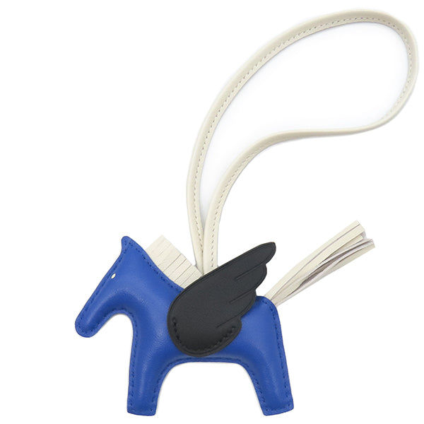 エルメス HERMES ロデオPM ペガサス ブルーフランス×クレ×ブラック アニューミロ バッグチャーム 青 オフホワイト 黒