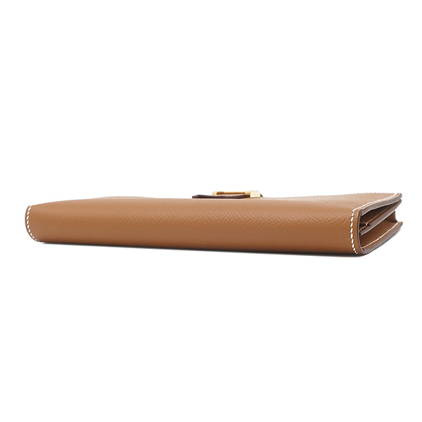 エルメス HERMES ベアンスフレ ゴールド ヴォーエプソン 長財布 ゴールド金具 茶 二つ折り財布