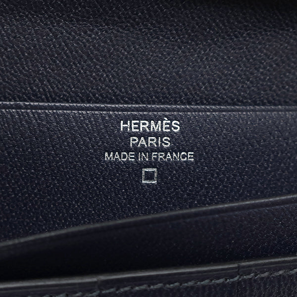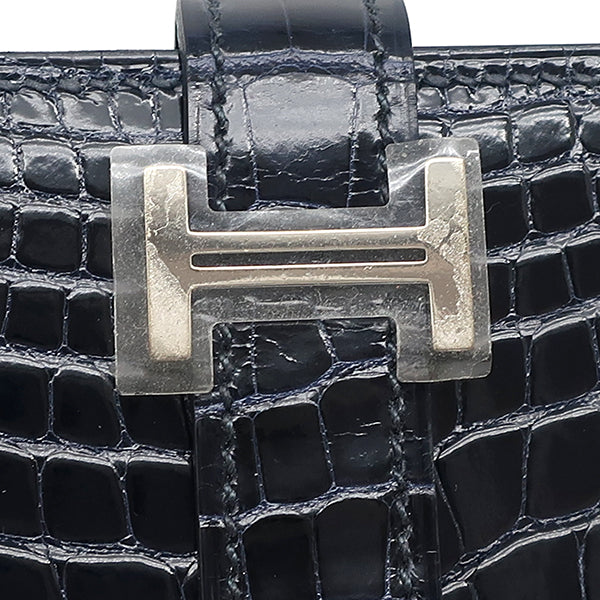 エルメス HERMES ベアンスフレ ブルーマリン アリゲーター 長財布 シルバー金具 紺 クロコ 二つ折り財布