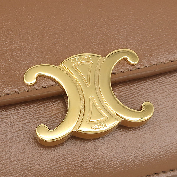 セリーヌ CELINE トリオンフ フラップ付き カードホルダー ブラウン系 カーフ シャイニーカーフスキン カードケース ゴールド金具 茶