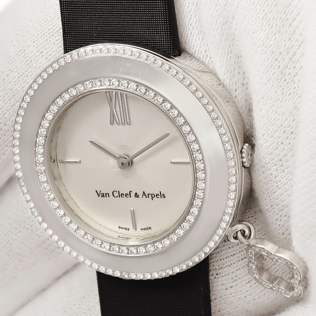 ヴァンクリーフアーペル Van Cleef & Arpels チャーム ウォッチ VCARM95200 クオーツ レディース K18WG無垢 純正ダイヤ ギヨシェ