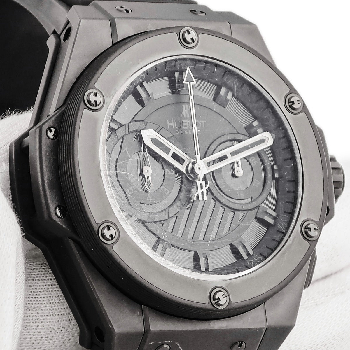 ウブロ HUBLOT キングパワー フドロワイヤント オールブラック 715.CI.1110.RX 自動巻き メンズ OH済 クロノグラフ 限定
