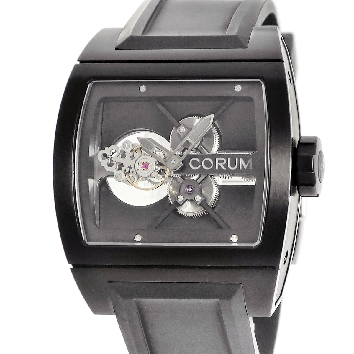 コルム CORUM ティーブリッジ トゥールビヨン B022/00936 手巻き メンズ OH済 スケルトン ブラックPVD加工 トノウ 限定