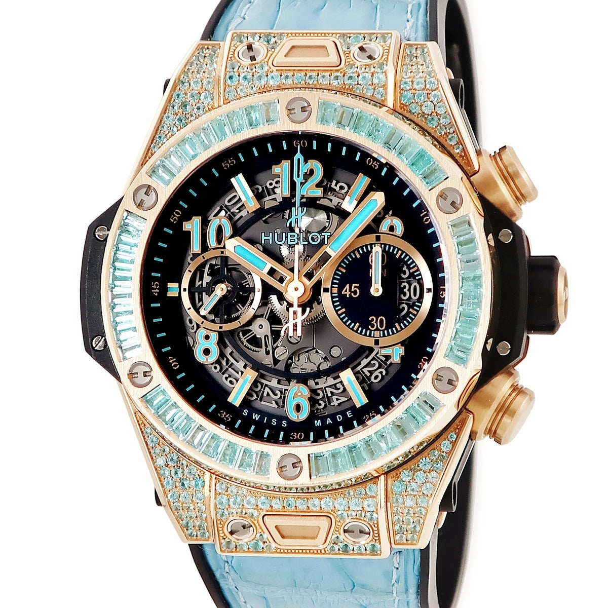 ウブロ HUBLOT ビッグバン ウニコ キングゴールド パライバ 411.OX.1189.LR.0919 自動巻き メンズ K18KG無垢 希少石 青
