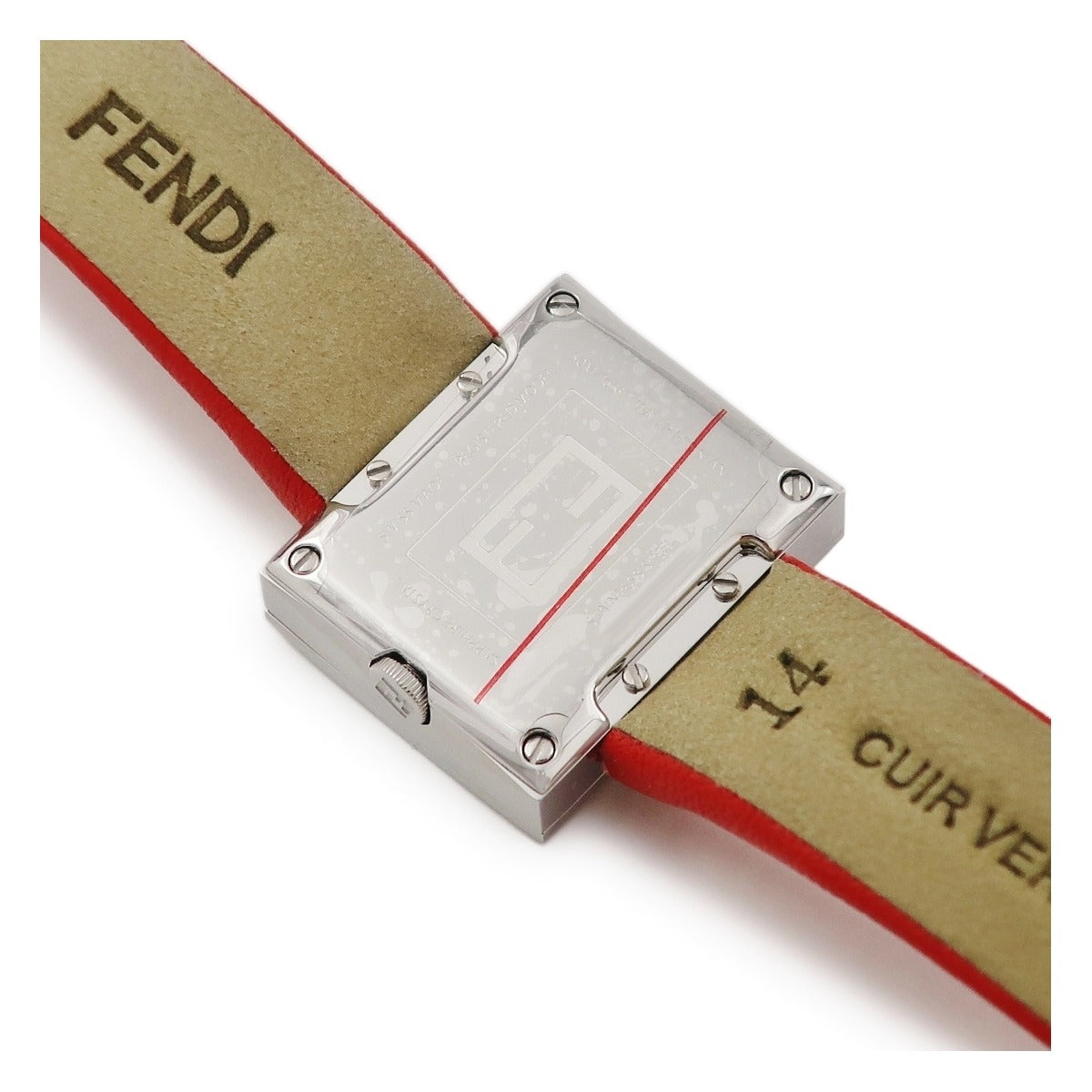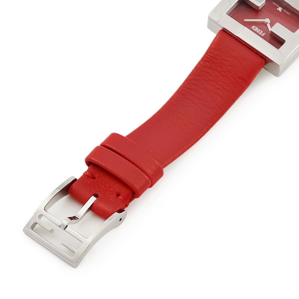 フェンディ FENDI マニア レクタンギュラー F100101901 クオーツ レディース 未使用 ズッカフェイス 純正ダイヤ シルバー 赤