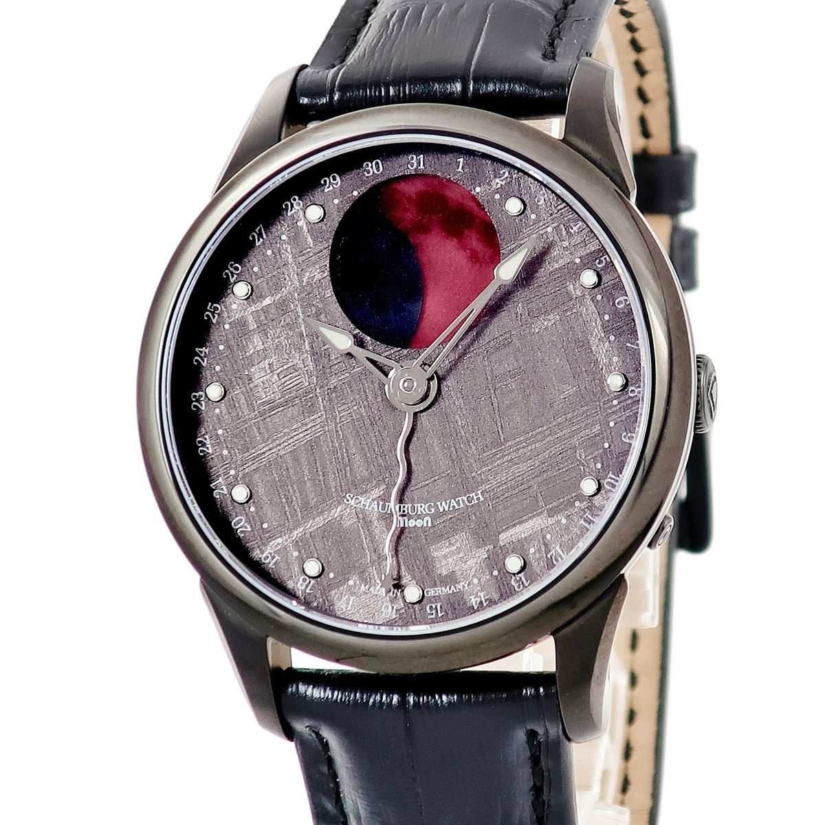 シャウボーグ SCHAUMBURG ムーン メテオライト MOON-METEORITE 自動巻き メンズ 新品同様 ポインターデイト ブラックPVD