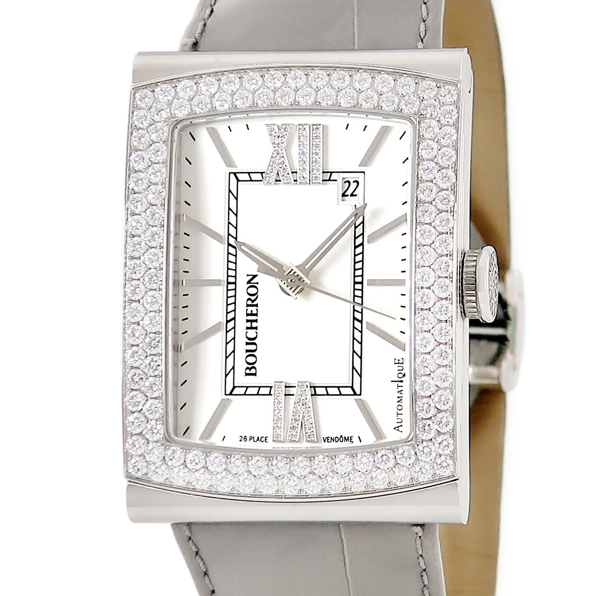 ブシュロン BOUCHERON リフレ XL WA009213 自動巻き メンズ 純正ダイヤ デイト 角型 バー ローマン シルバー