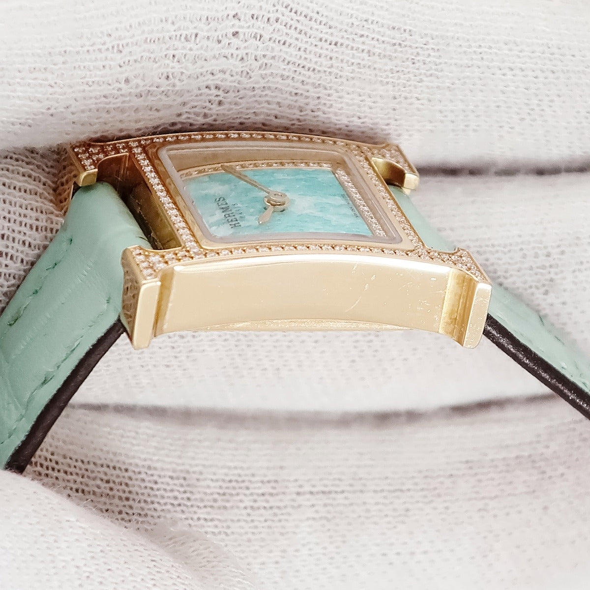 エルメス HERMES Hウォッチ TPM HH1.174 クオーツ レディース K18PG無垢 純正ダイヤ アマゾナイト H型