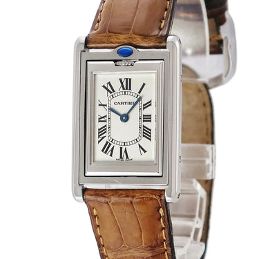 カルティエ Cartier タンク バスキュラント MM W1011258 クオーツ レディース スクエア 反転ケース アイボリー 青針
