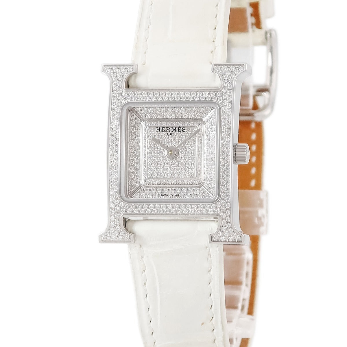 エルメス HERMES Hウォッチ PM HH4.231 クオーツ レディース 純正ダイヤ パヴェ H型 スクエア