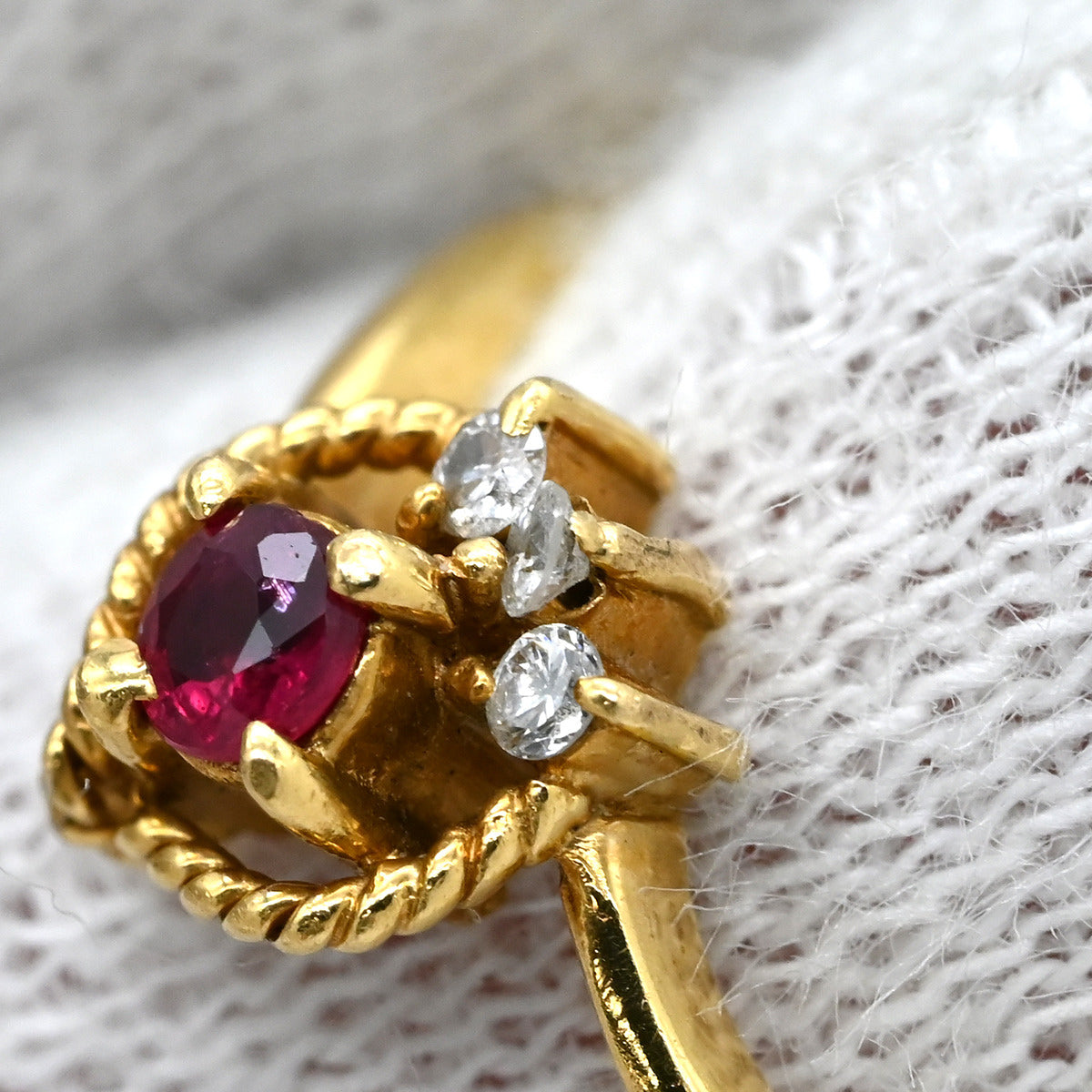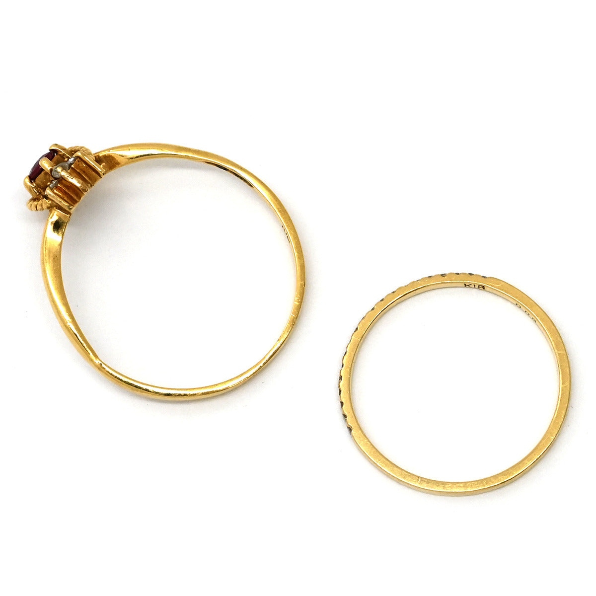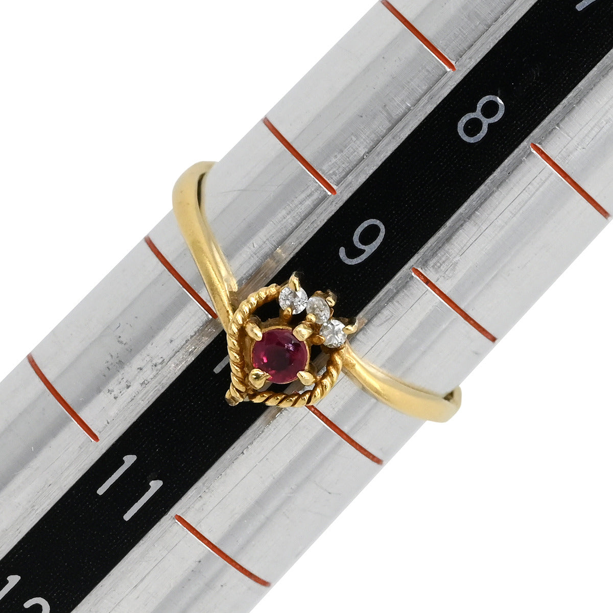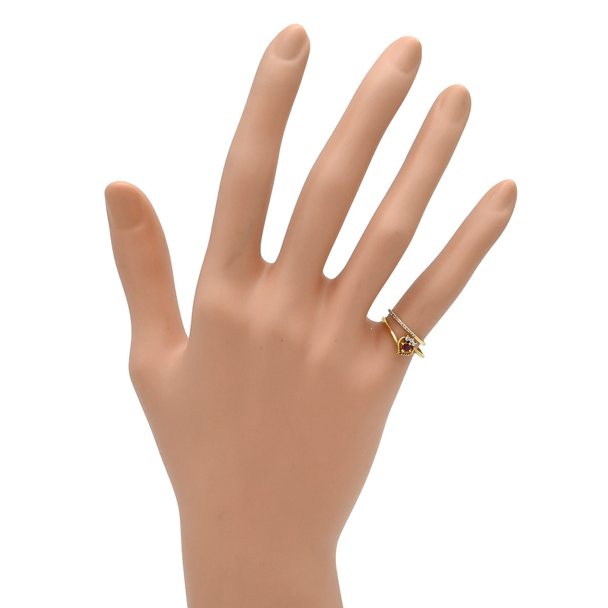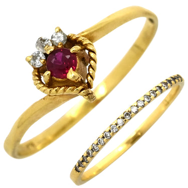 ノンブランド NON BRAND ルビー ダイヤ リング イエローゴールド×レッド リング 指輪 Au750 18K 18金 レッド 赤 2連 2重 2セット ピンキーリング 4号