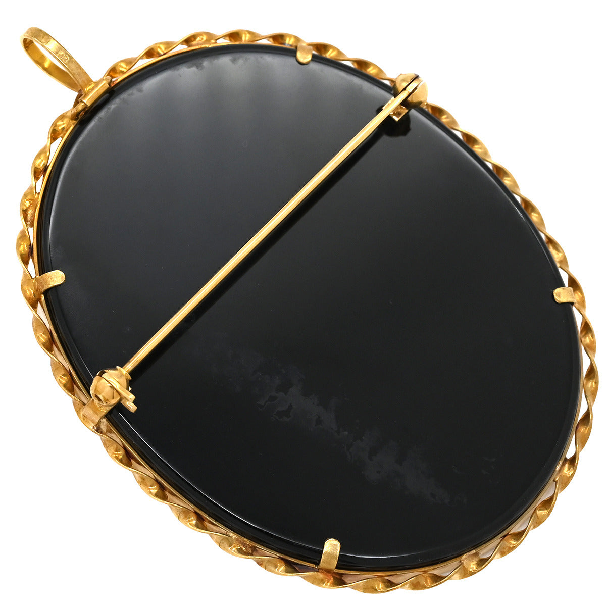 ノンブランド NON BRAND カメオ イエローゴールド K18YG メノウ ブローチ 彫刻 ペンダントトップ
