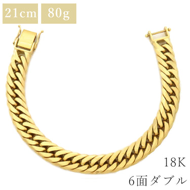 喜平 KIHEI K18 18金 20cm 80.6g 6面 ダブル W イエローゴールド K18YG ブレスレット 造幣局検定マーク 大 ※ショッピングローン対応していません。