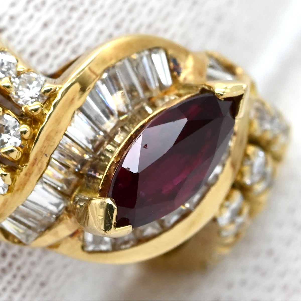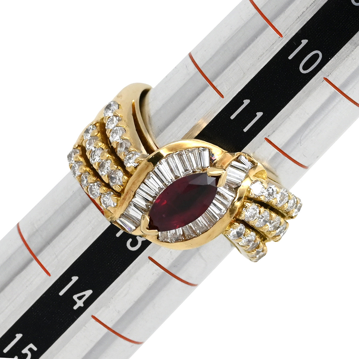 ノンブランド NON BRAND ルビー ダイヤ リング イエローゴールド リング 指輪 Au750 18K 18金 レッド 赤 12号