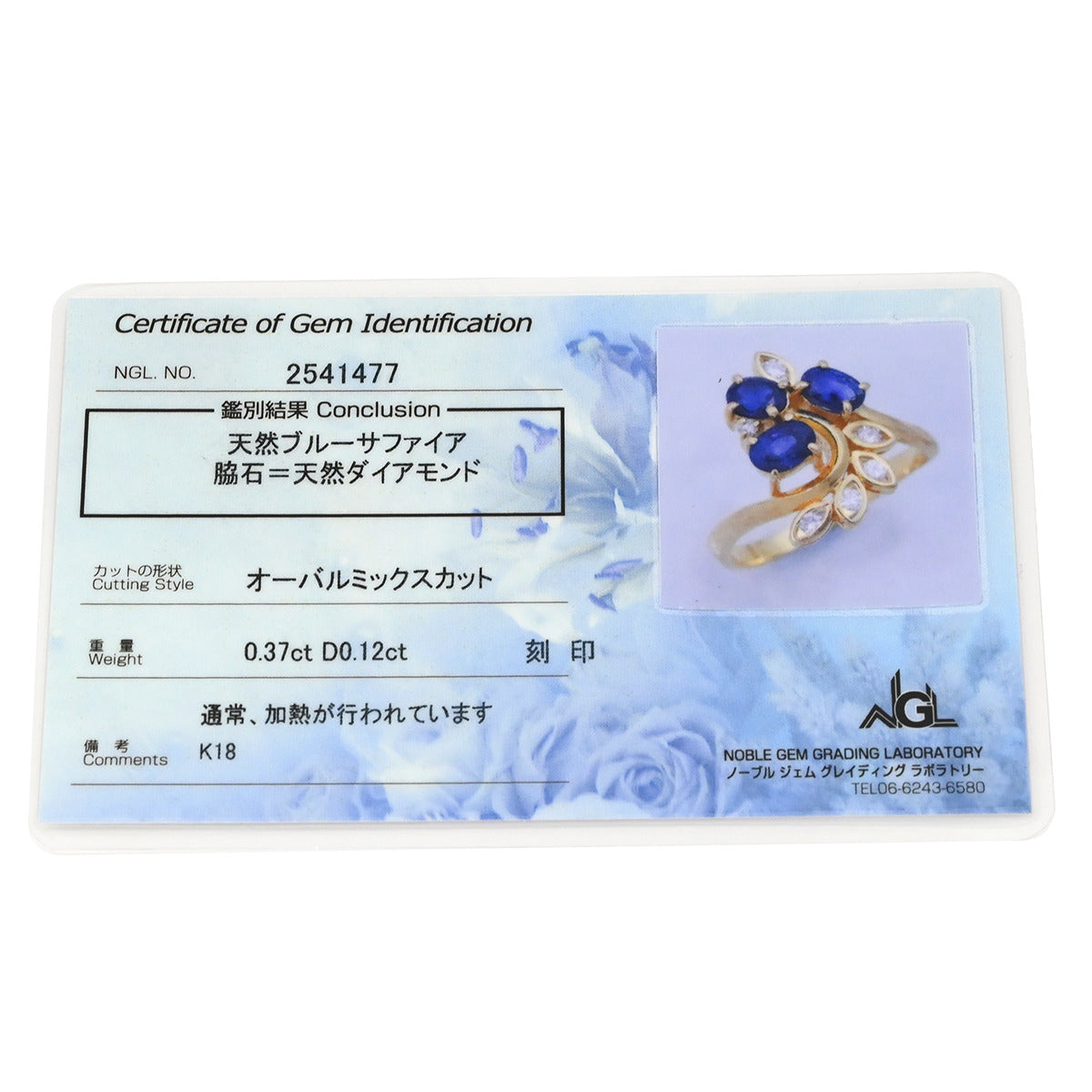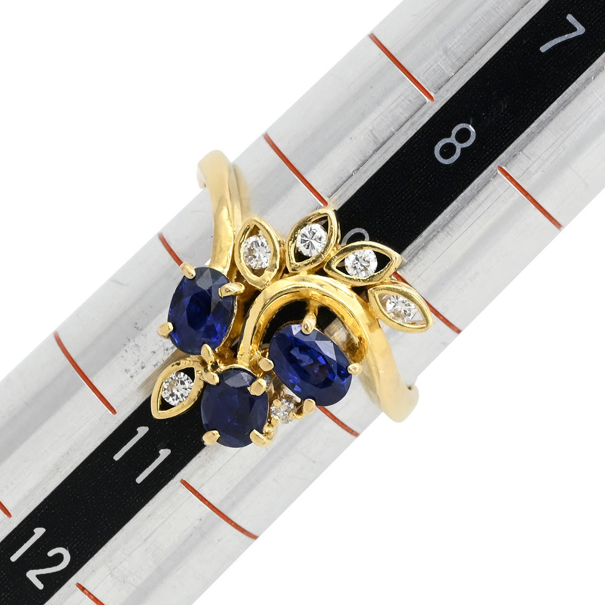 ノンブランド NON BRAND ブルーサファイア ダイヤリング イエローゴールド×ブルー K18YG ダイヤモンド サファイア リング 指輪 Au750 18K 18金 リーフ 9.5号