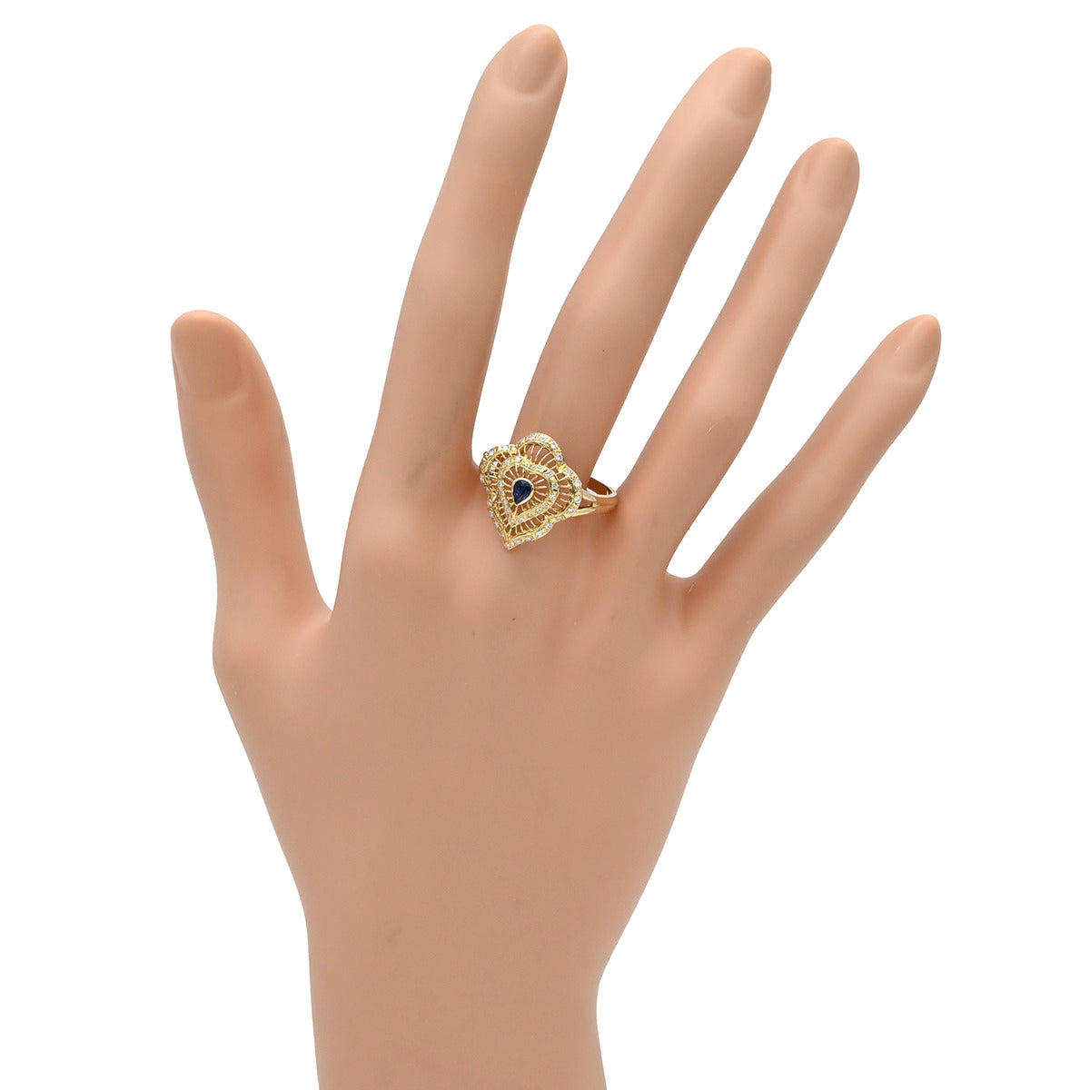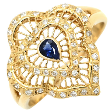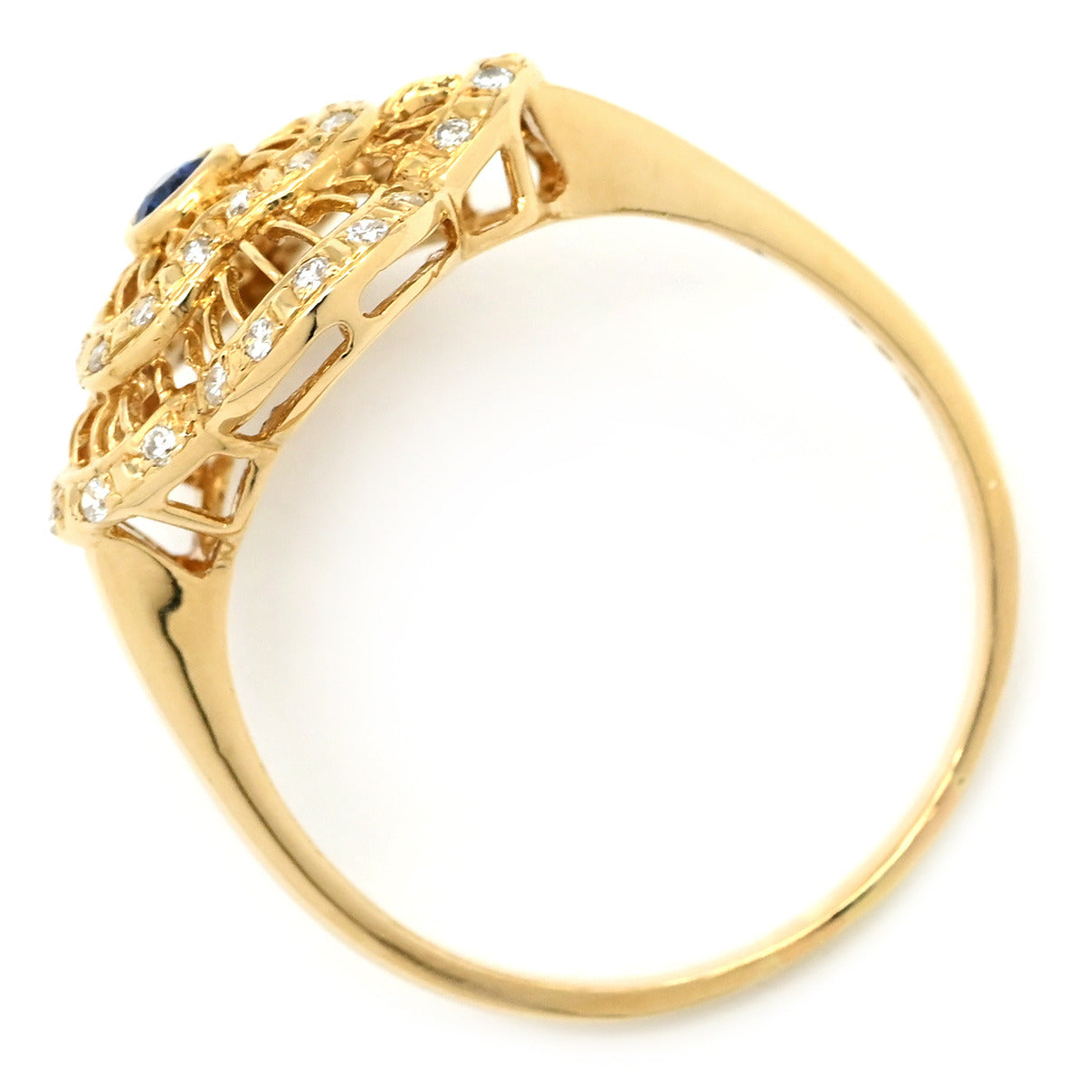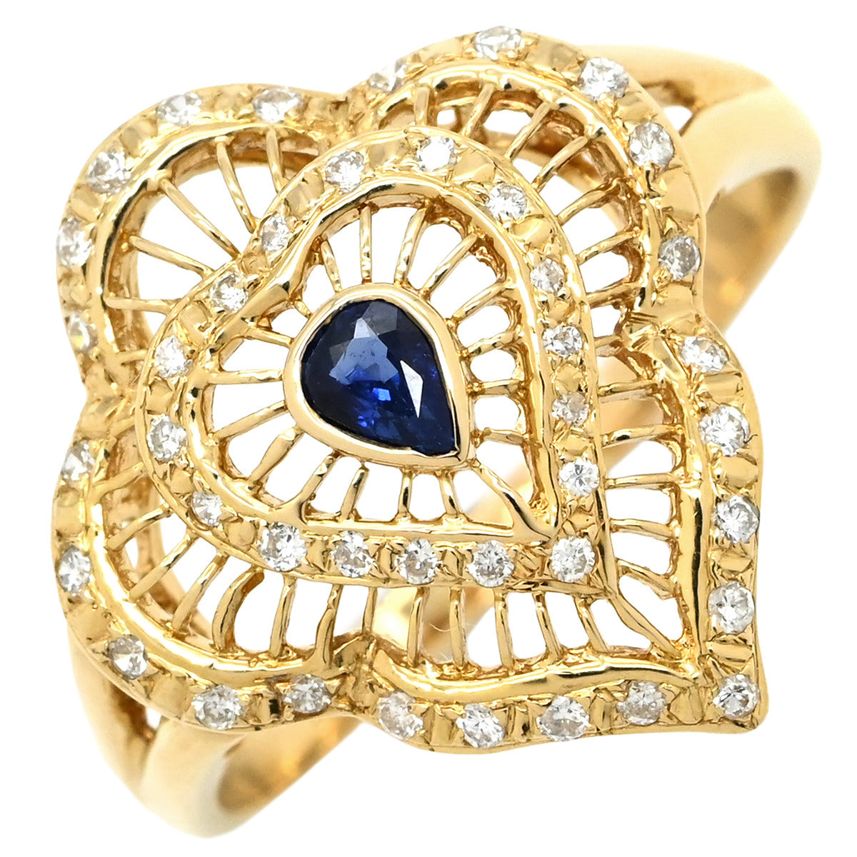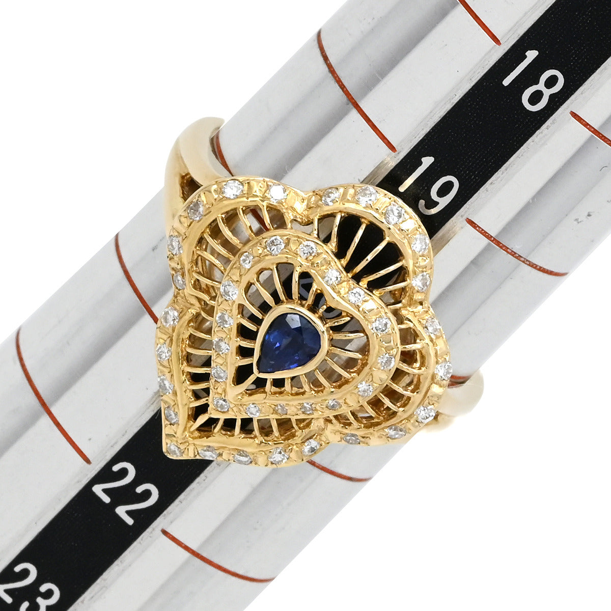 ノンブランド NON BRAND ブルーサファイア ダイヤリング イエローゴールド×ブルー K18YG ダイヤモンド リング 指輪 Au750 18K 18金 透かしハートモチーフ 20号