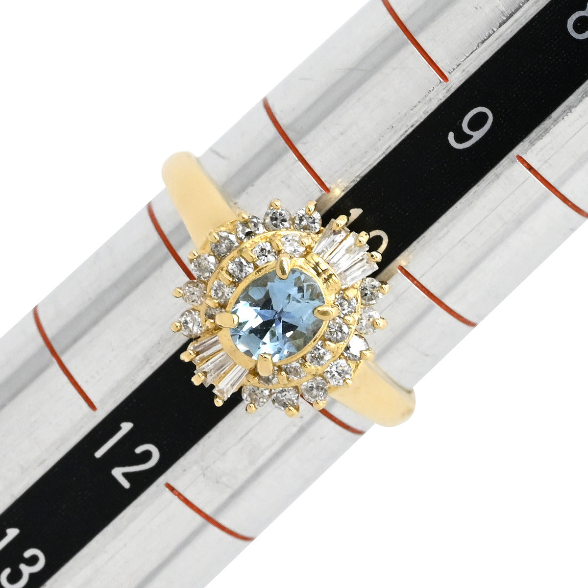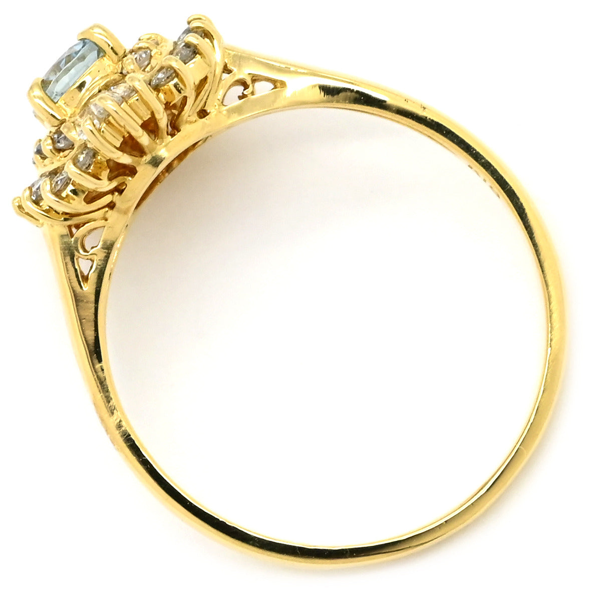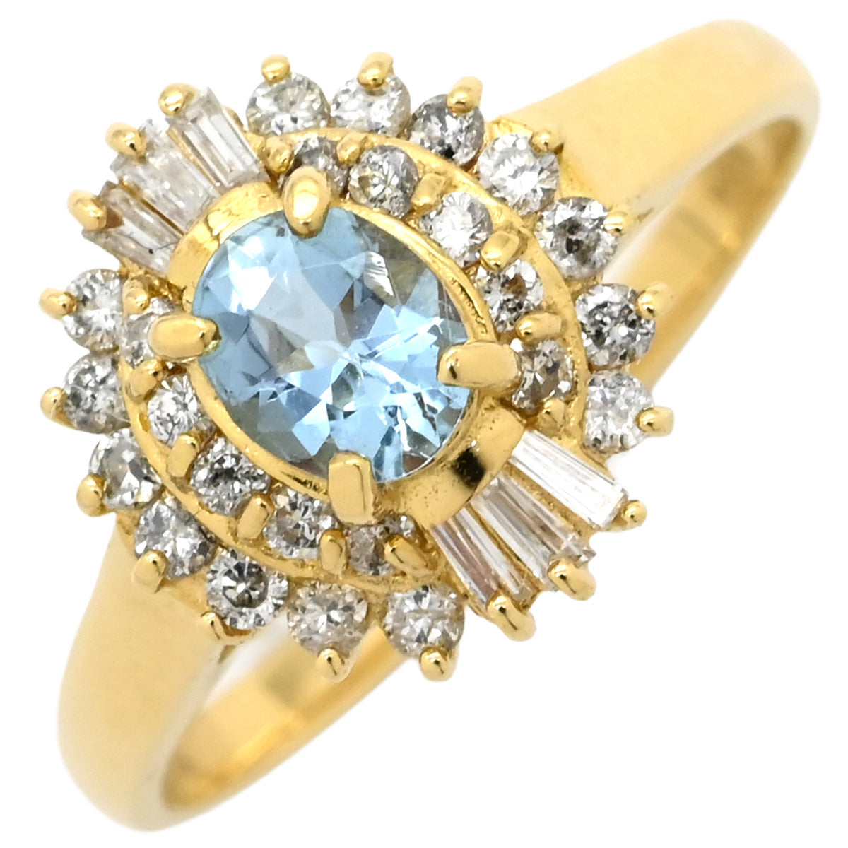 ノンブランド NON BRAND アクアマリン ダイヤリング イエローゴールド×ブルー K18YG ダイヤモンド アクアマリン リング 指輪 Au750 18K 18金 オーバル 11号