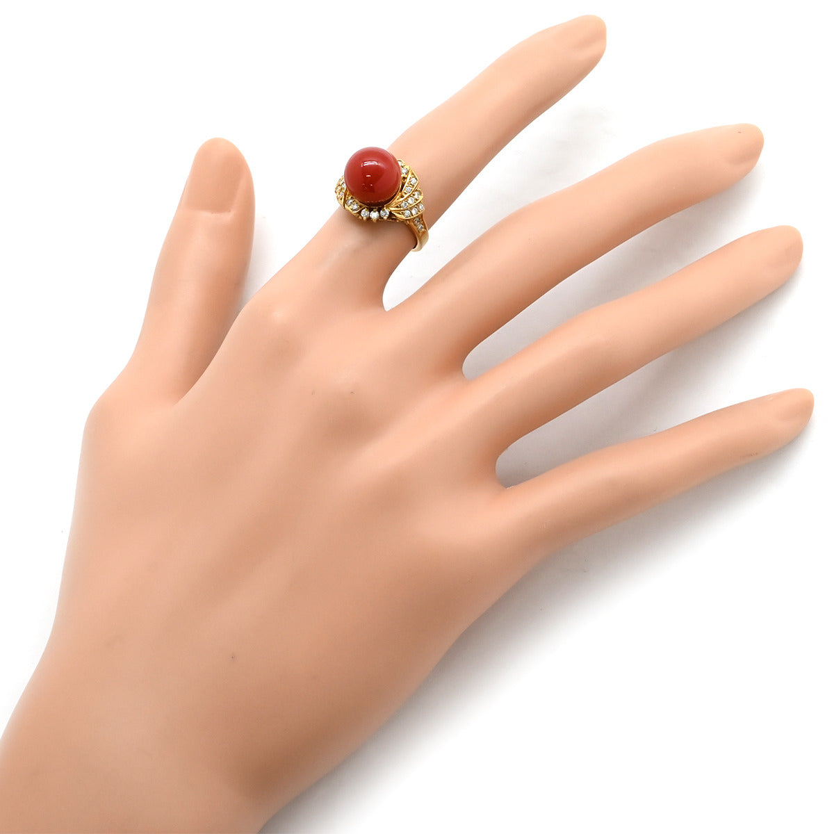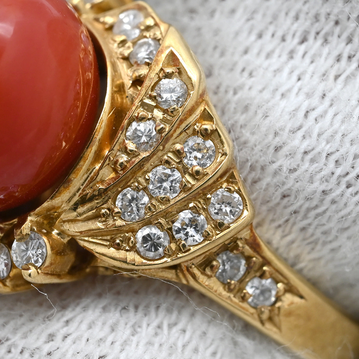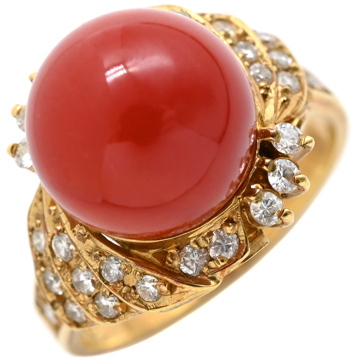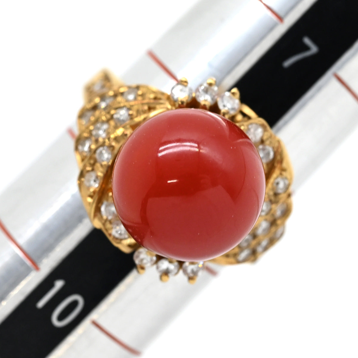 ノンブランド NON BRAND 珊瑚 ダイヤリング イエローゴールド リング 指輪 サンゴ 赤 8.5号