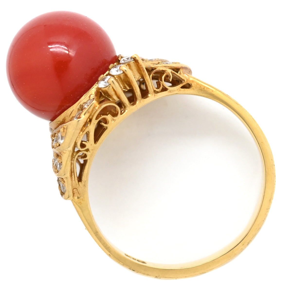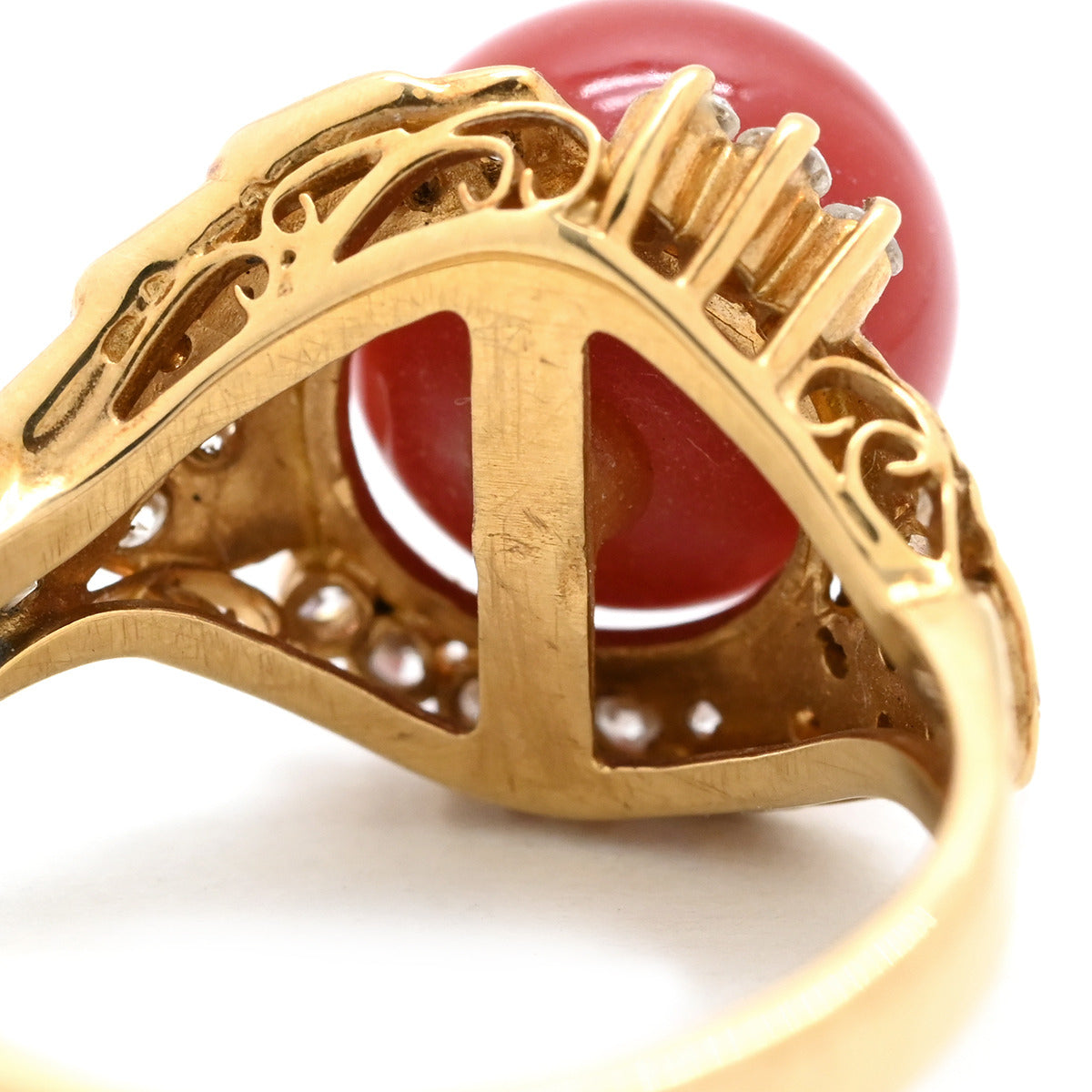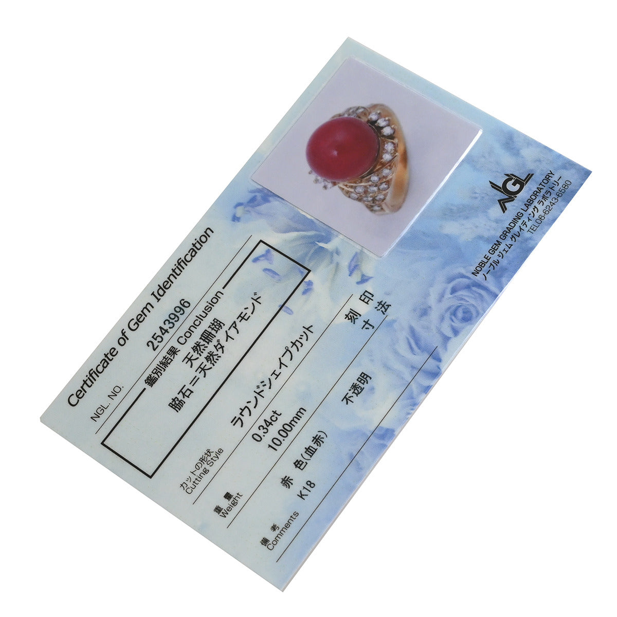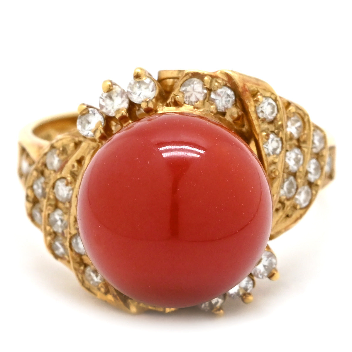 ノンブランド NON BRAND 珊瑚 ダイヤリング イエローゴールド リング 指輪 サンゴ 赤 8.5号