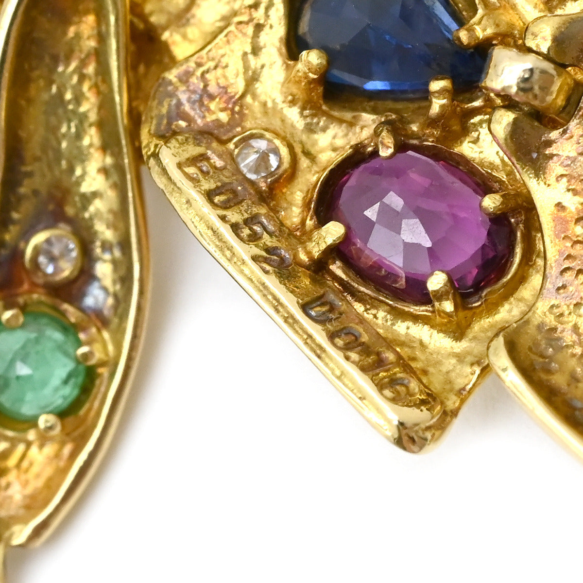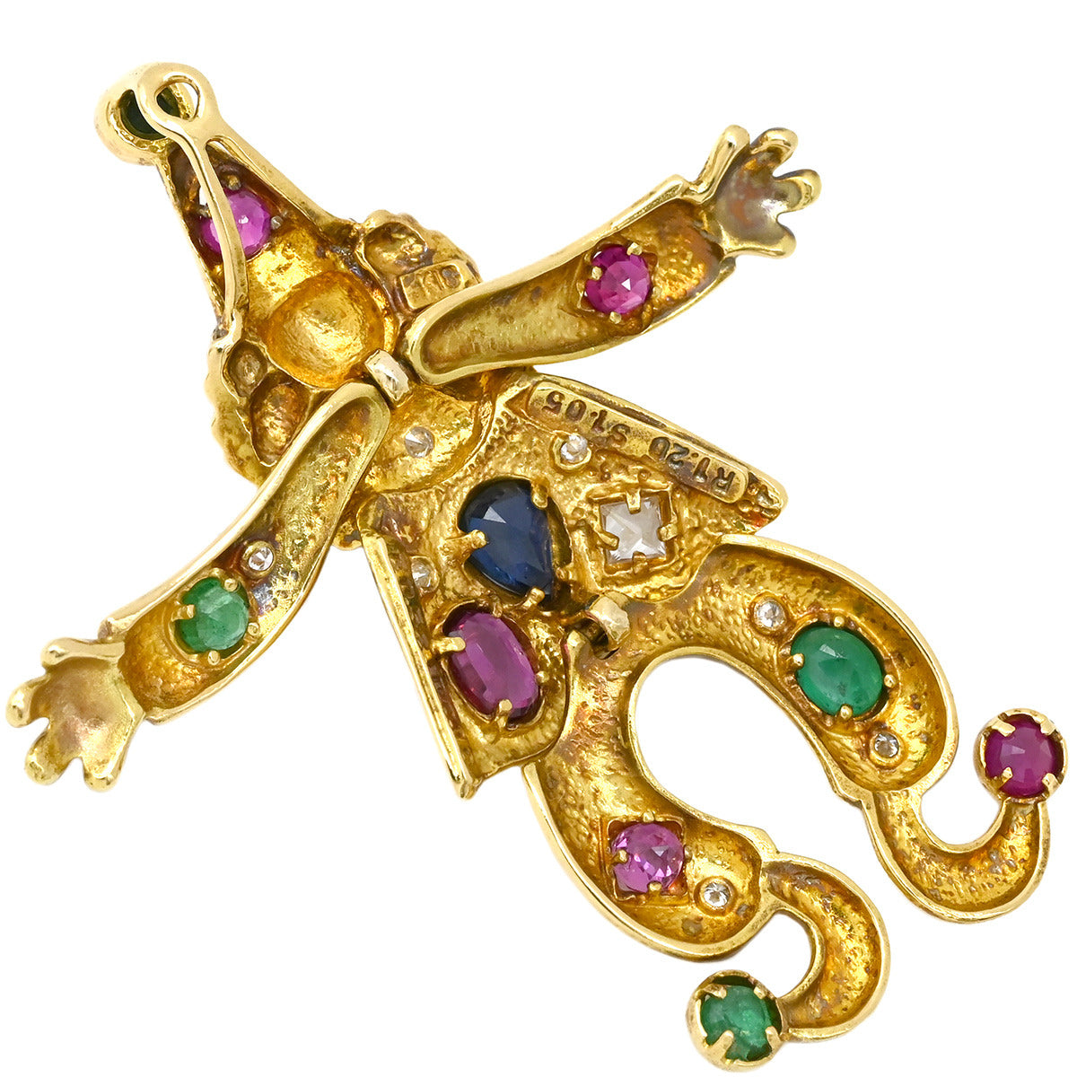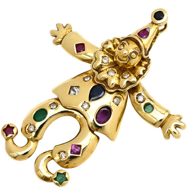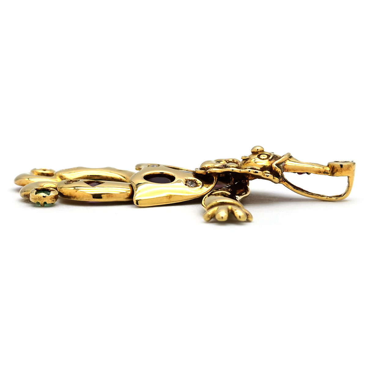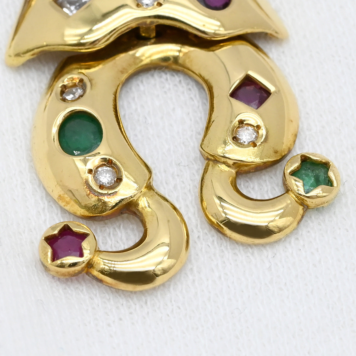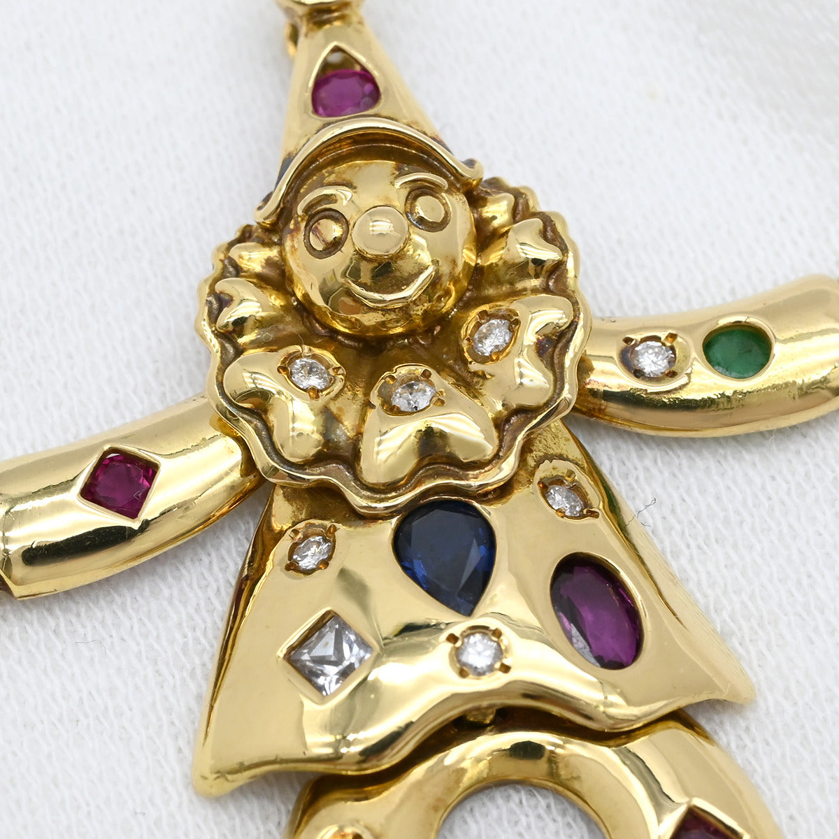 ノンブランド NON BRAND イエローゴールド×マルチカラー K18YG ダイヤモンド サファイア ルビー エメラルド ペンダントトップ Au750 18K 18金 ダイヤ マルチストーン ダンシングピエロモチーフ アンティーク