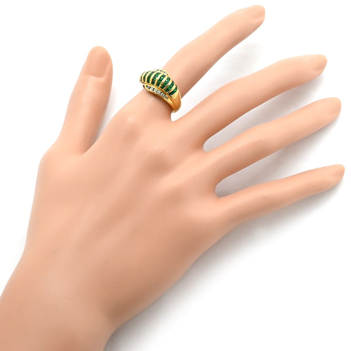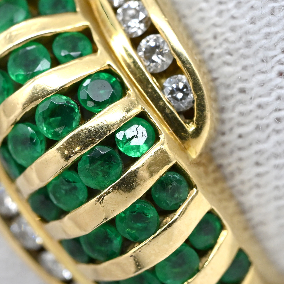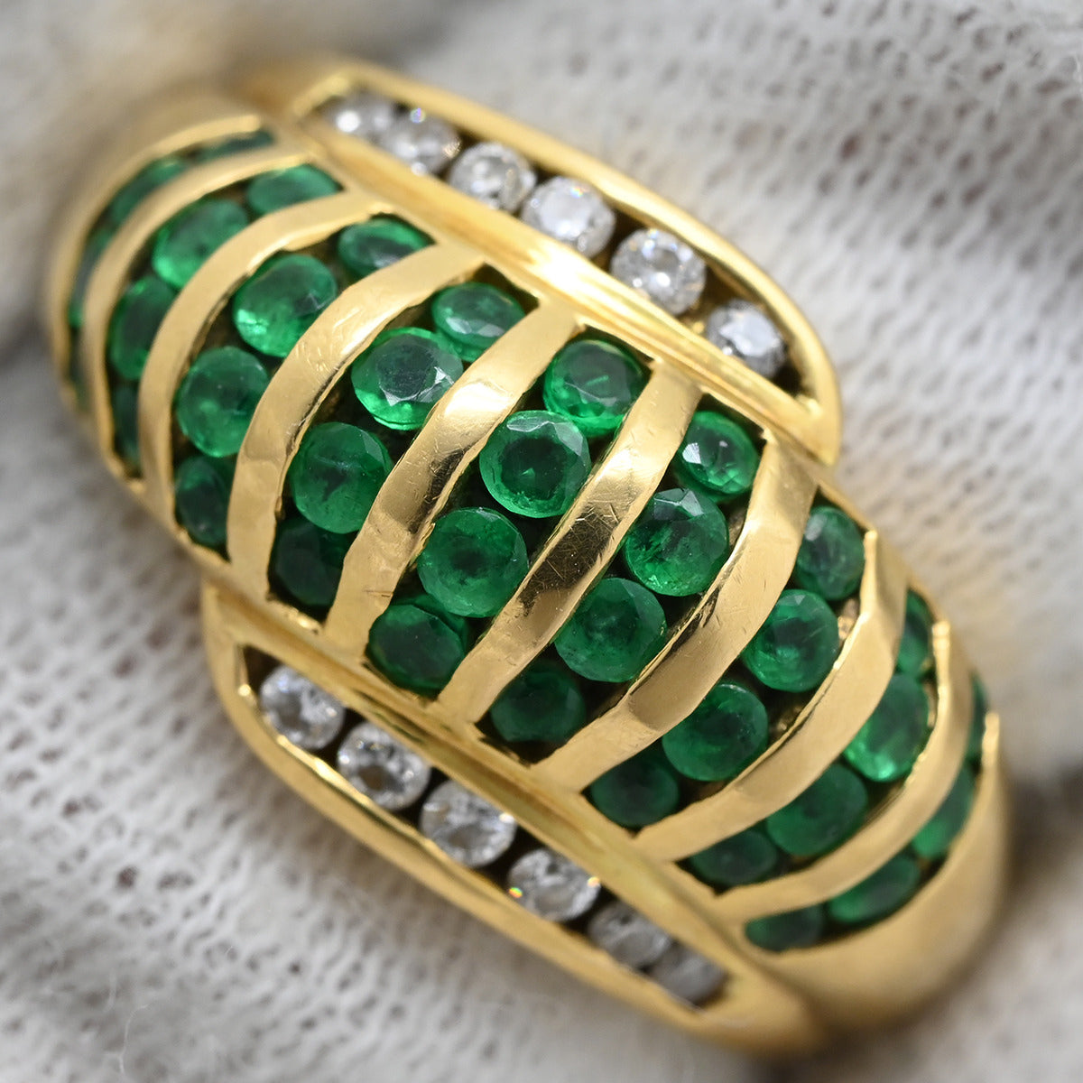 ノンブランド NON BRAND エメラルド 0.72ct ダイヤモンド リング イエローゴールド リング 指輪 グリーン 緑 ラウンドミックスカット デザインリング AU750 18金 10号