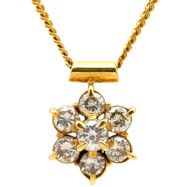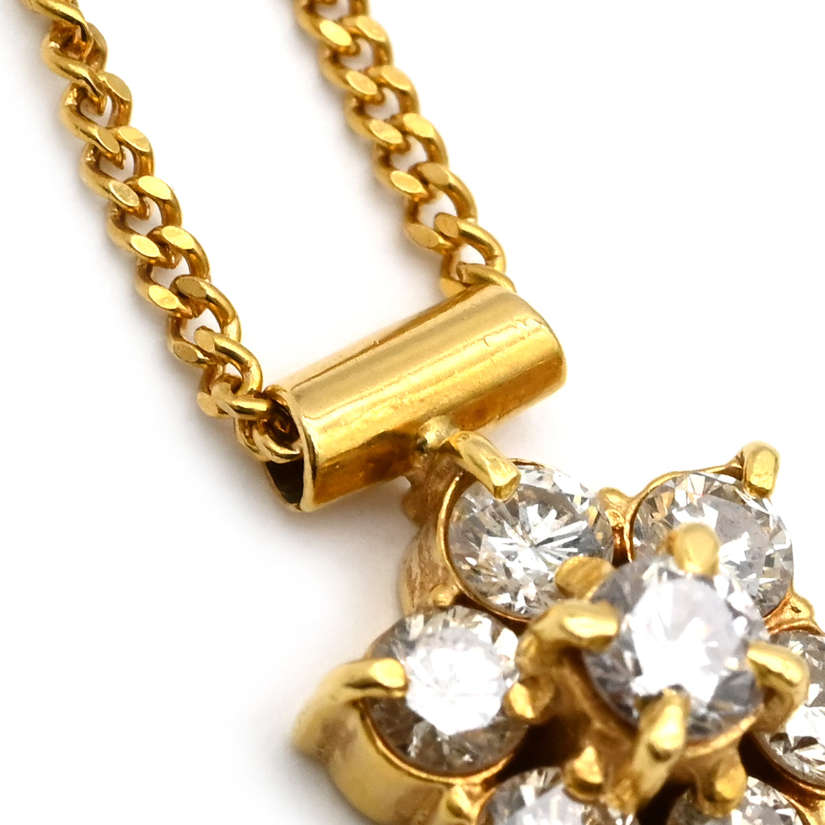 ノンブランド NON BRAND ダイヤ ペンダント イエローゴールド×シルバー ネックレス Au750 18K 18金 7P 7石 7粒 フラワーモチーフ 花