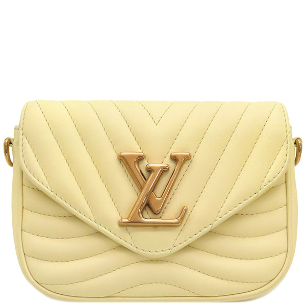 ルイヴィトン LOUIS VUITTON ニューウェーブ ミュルティ ポシェット イエロー系 レザー ショルダーバッグ ゴールド金具 LVロゴ チェーンショルダー