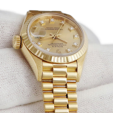 ロレックス ROLEX デイトジャスト 69178G 90番台 自動巻き レディース 90番台 K18YG無垢 純正10Pダイヤ シャンパン トリチウム