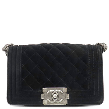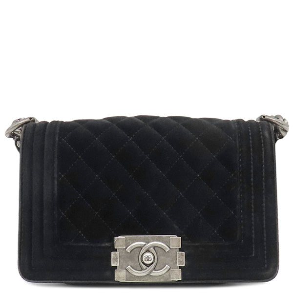 シャネル CHANEL ボーイシャネル A67085 ブラック ベロア レザー ショルダーバッグ シルバー金具 黒 ミニ チェーンショルダー