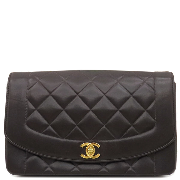 シャネル CHANEL ダイアナ 25 ブラック ラムスキン ショルダーバッグ ゴールド金具 黒 チェーンショルダー 肩掛け ヴィンテージ