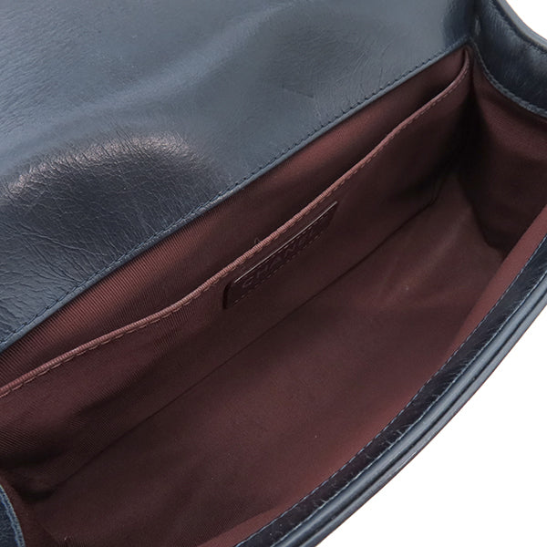シャネル CHANEL ボーイシャネル ネイビー レザー ショルダーバッグ ガンメタル金具 紺 チェーン