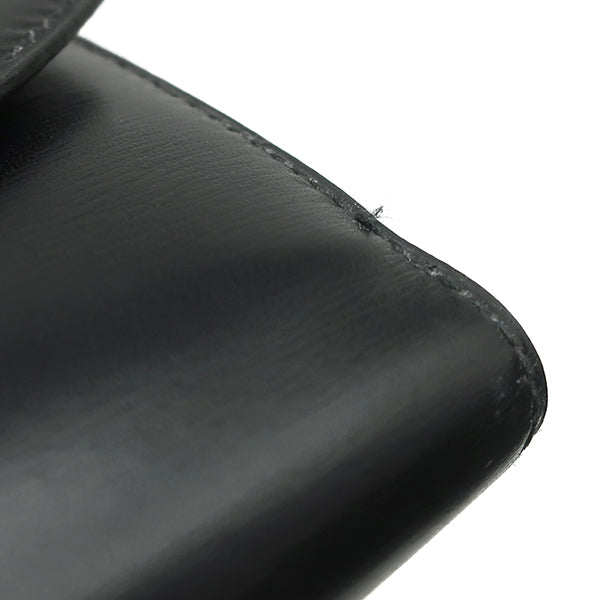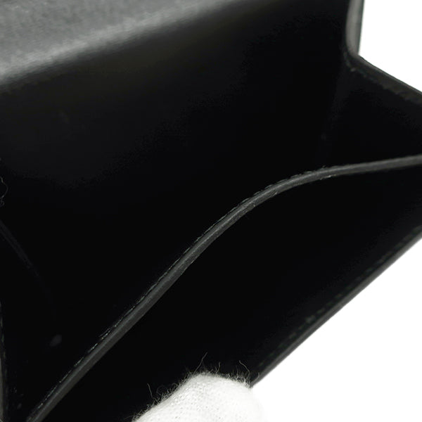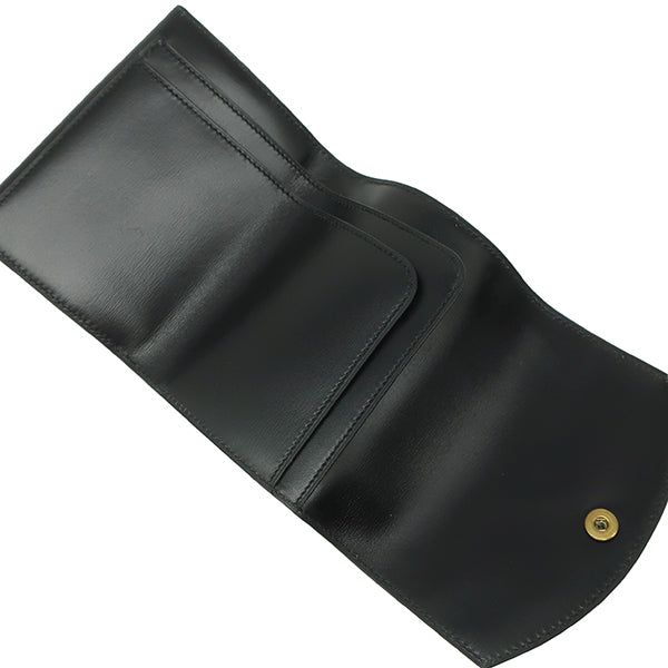 エルメス HERMES コンパクト ウォレット ブラック ボックスカーフ 三つ折り財布 ゴールド金具 黒 ミニ財布
