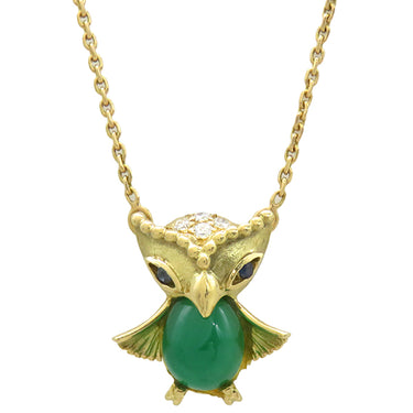 ジャンピエールベラン JEAN PIERRE BELLIN フクロウモチーフ グリーンXイエローゴールド K18YG ダイヤモンド グリーンカルセドニー ブルーサファイア ネックレス 緑 18金 750YG