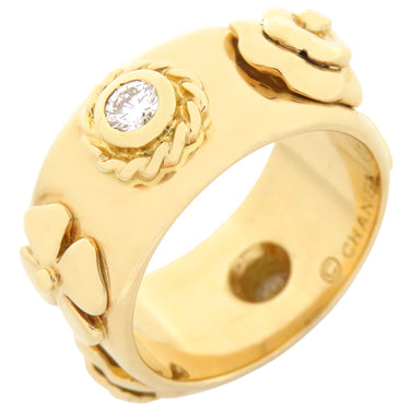 シャネル CHANEL スリーシンボル イエローゴールド K18YG ダイヤモンド リング 指輪 750AU 2Pダイヤ 8号