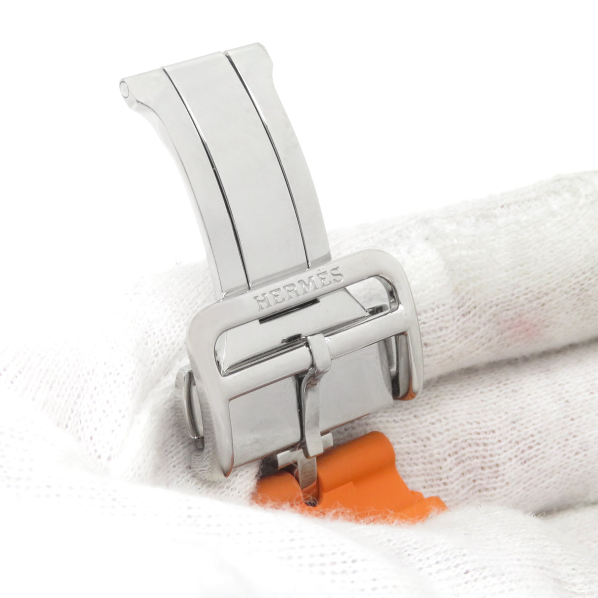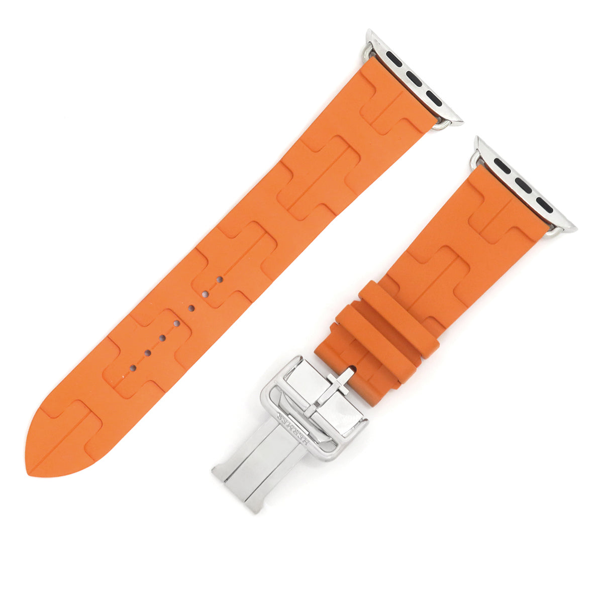 エルメス HERMES 純正 アップルウォッチ用ラバーベルト オレンジ ラバー ステンレススチール 腕時計パーツ 新品同様 ストラップ 24mm オレンジ バックル付 金具付