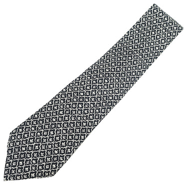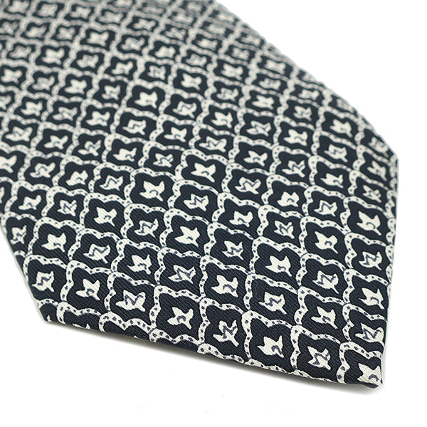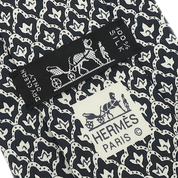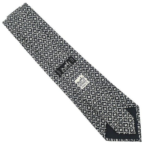 エルメス HERMES 9cm ブラック×ホワイト シルク ネクタイ 総柄 小紋柄 花柄 パターン