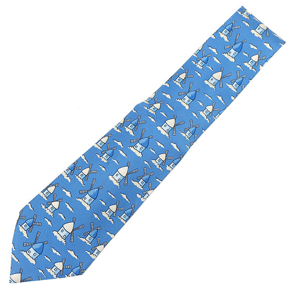 エルメス HERMES 風車柄 8.5cm ブルー×ホワイト シルク ネクタイ 青 白 雲