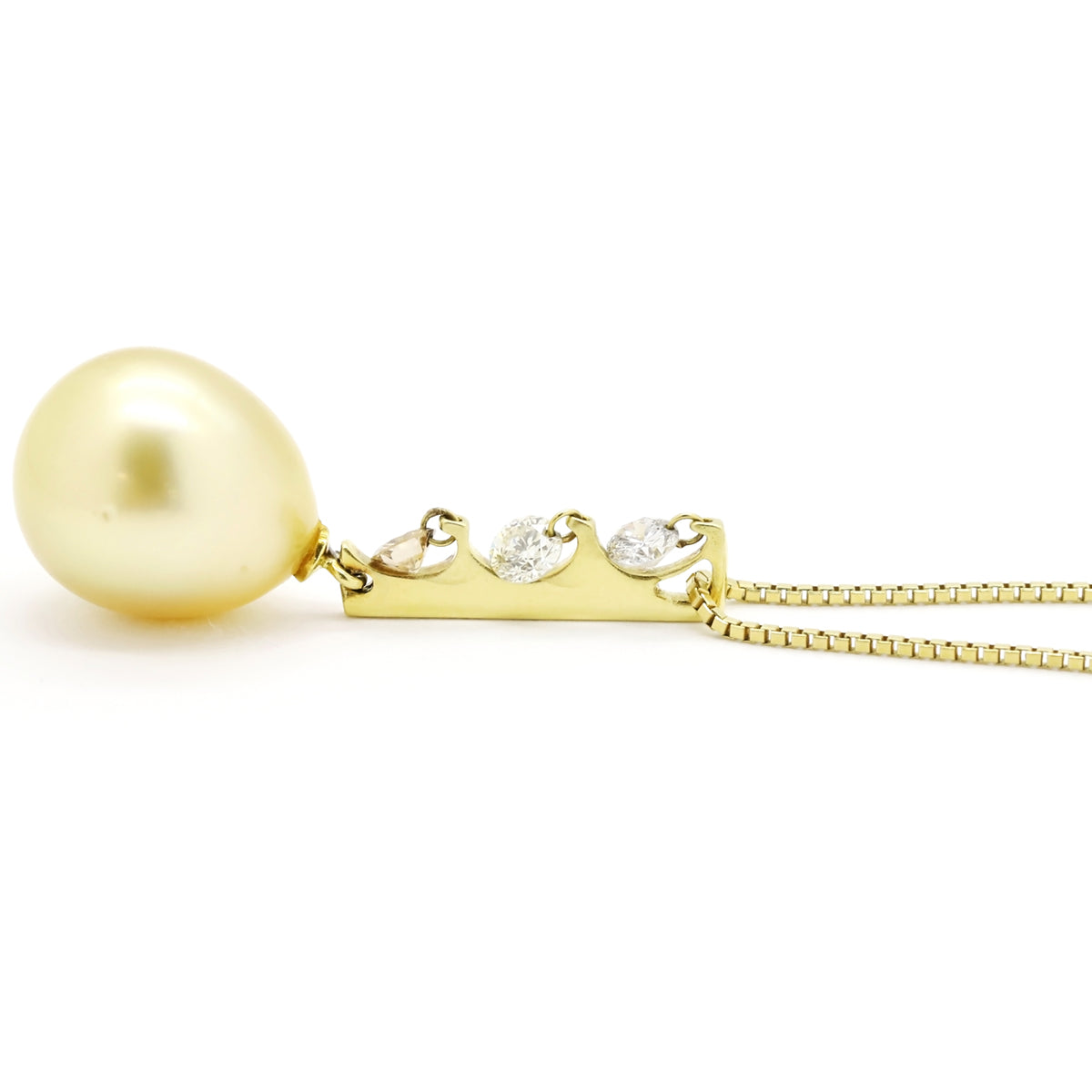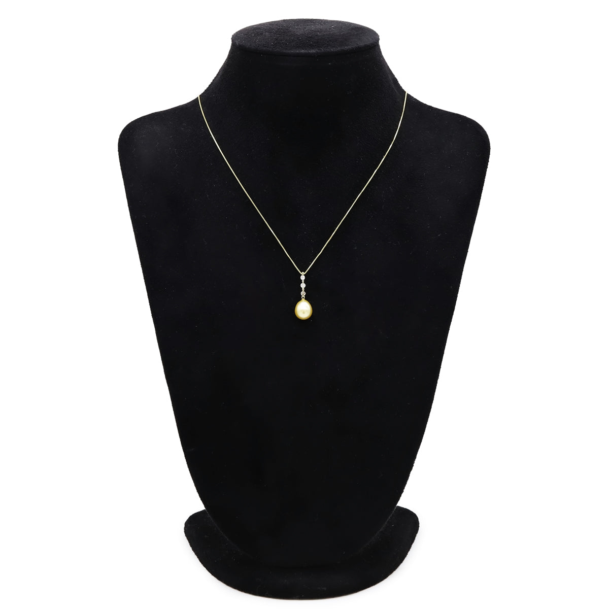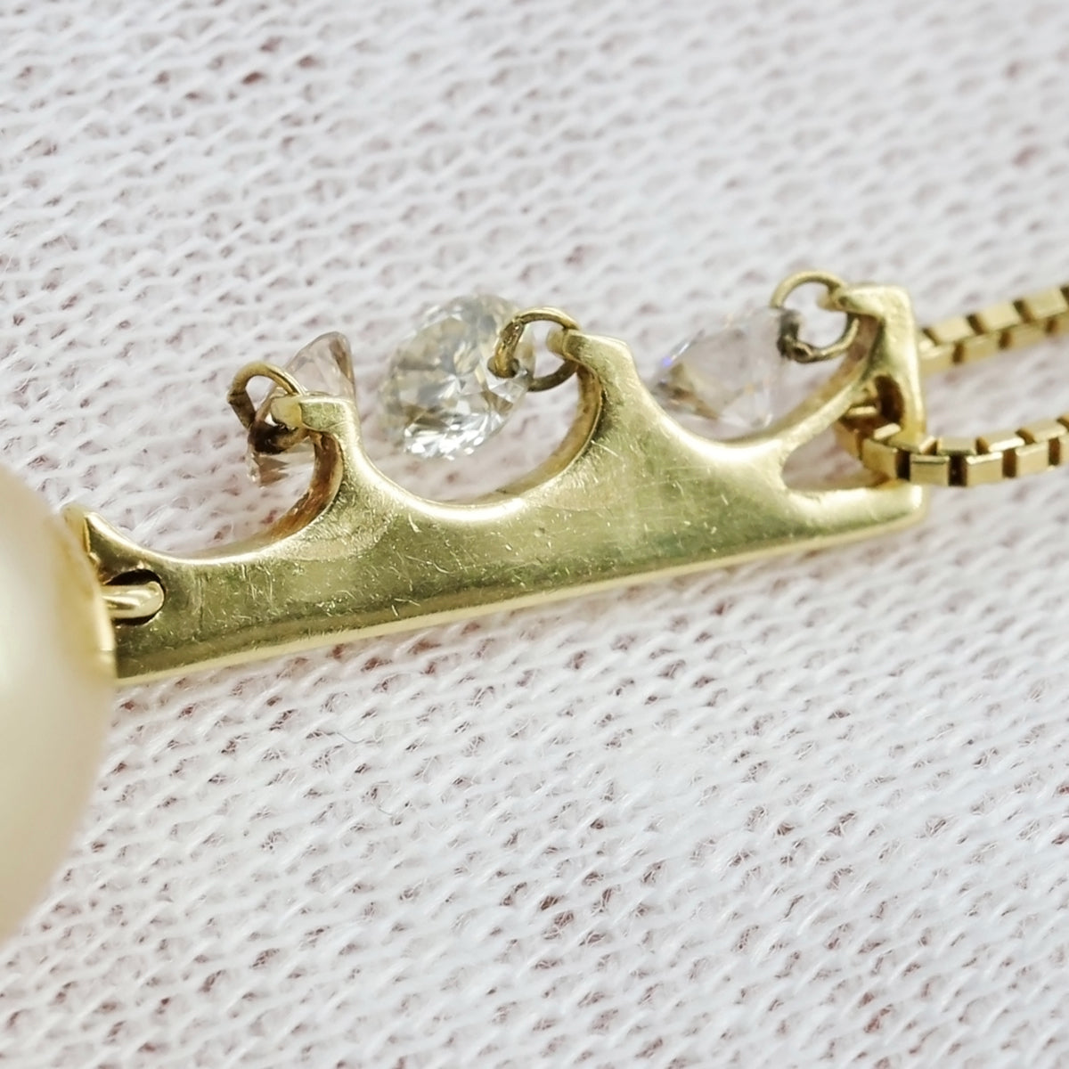 ノンブランド NON BRAND パール ダイヤ ネックレス イエローゴールド ネックレス 真珠 スイング 3連 ダイヤモンド イエローゴールド ハート