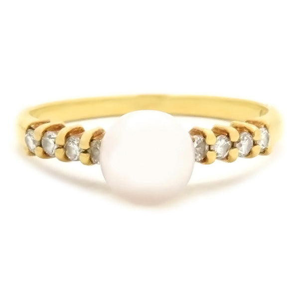 TASAKI TASAKI パール ダイヤリング パールホワイトXイエローゴールド K18YG パール ダイヤモンド リング 指輪 真珠 1P 1粒 10号
