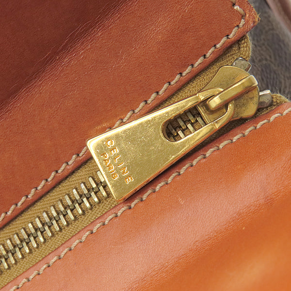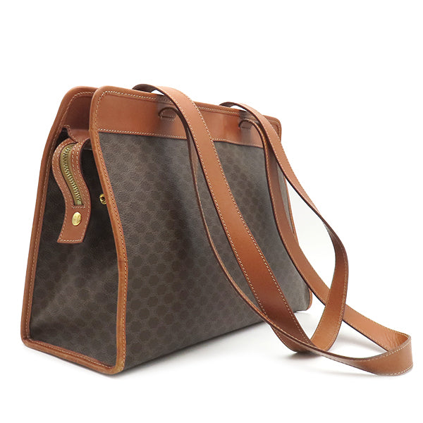 セリーヌ CELINE マカダム トート ブラウン PVC レザー トートバッグ ゴールド金具 茶 肩掛け