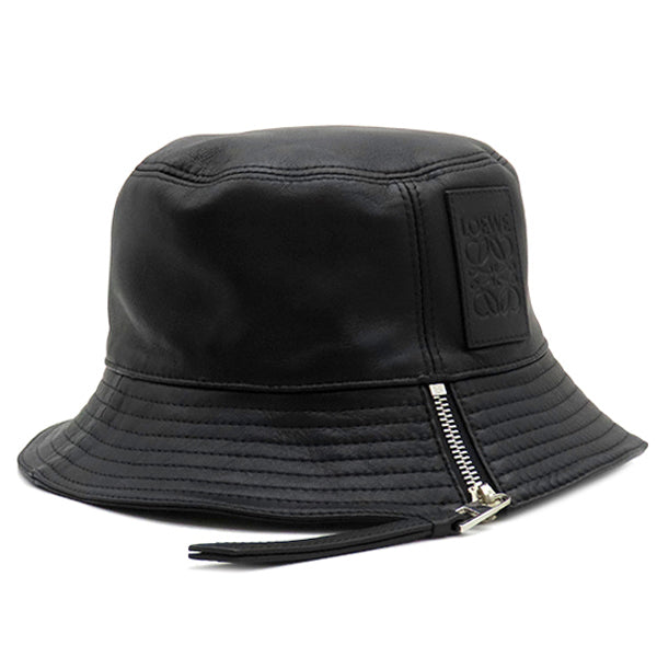 ロエベ LOEWE フィッシャーマンハット ブラック ラムスキン レザ #57 ハット シルバー金具 黒 帽子 アナグラム バケットハット