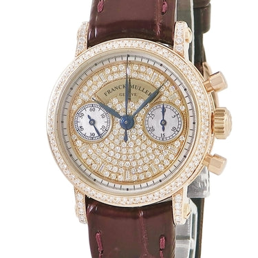 フランクミュラー FRANCK MULLER ラウンド クロノグラフ 2860NAD 手巻き レディース K18PG無垢 純正ダイヤ パヴェ シェル ビザン数字