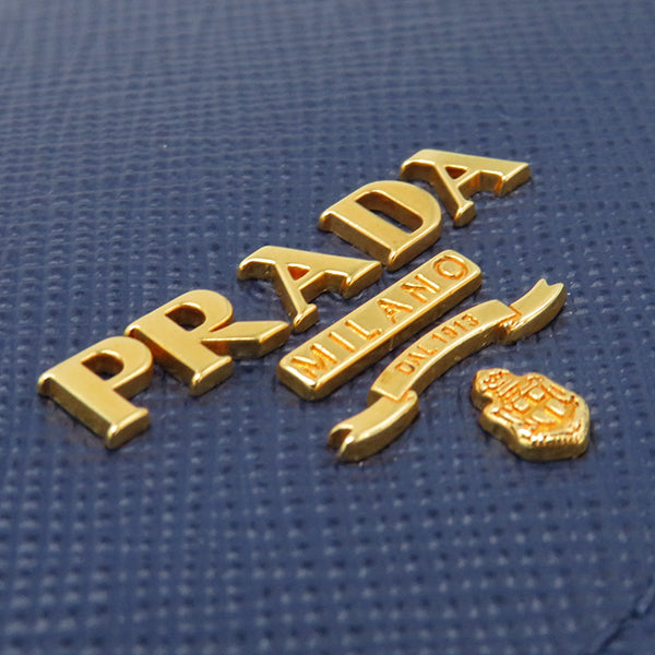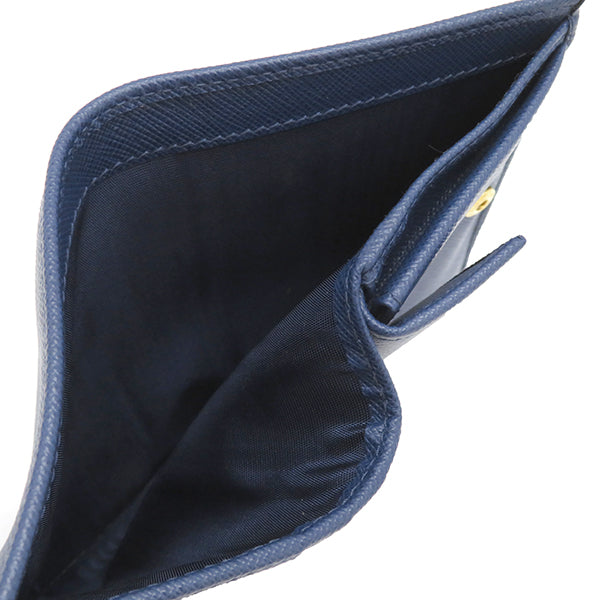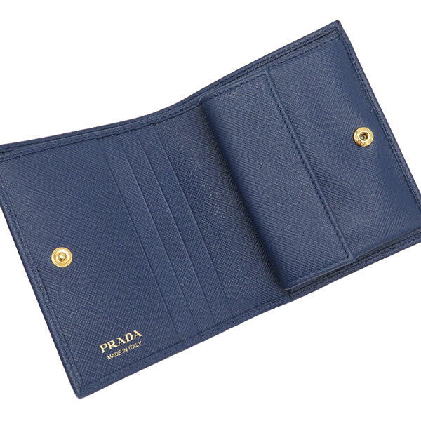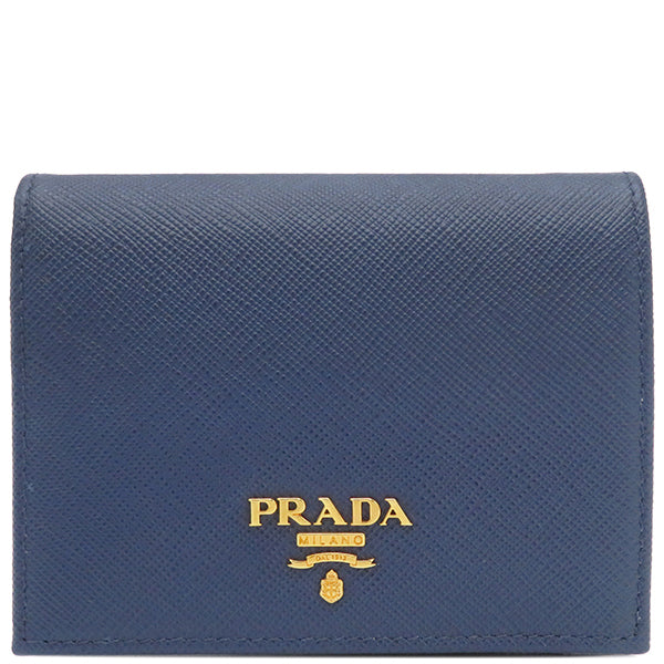 プラダ PRADA メタルロゴ コンパクトウォレット 1MV204 BLUETTE サフィアーノレザー 二つ折り財布 ゴールド金具 SAFFIANO METAL