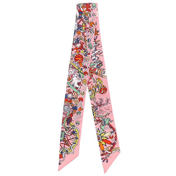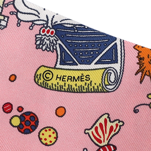 エルメス HERMES ツイリー ローズマラバー×ホワイト×ジョーヌ シルク スカーフ 新品 未使用【LA FOLLE PARADE/ラ フォル パラード】