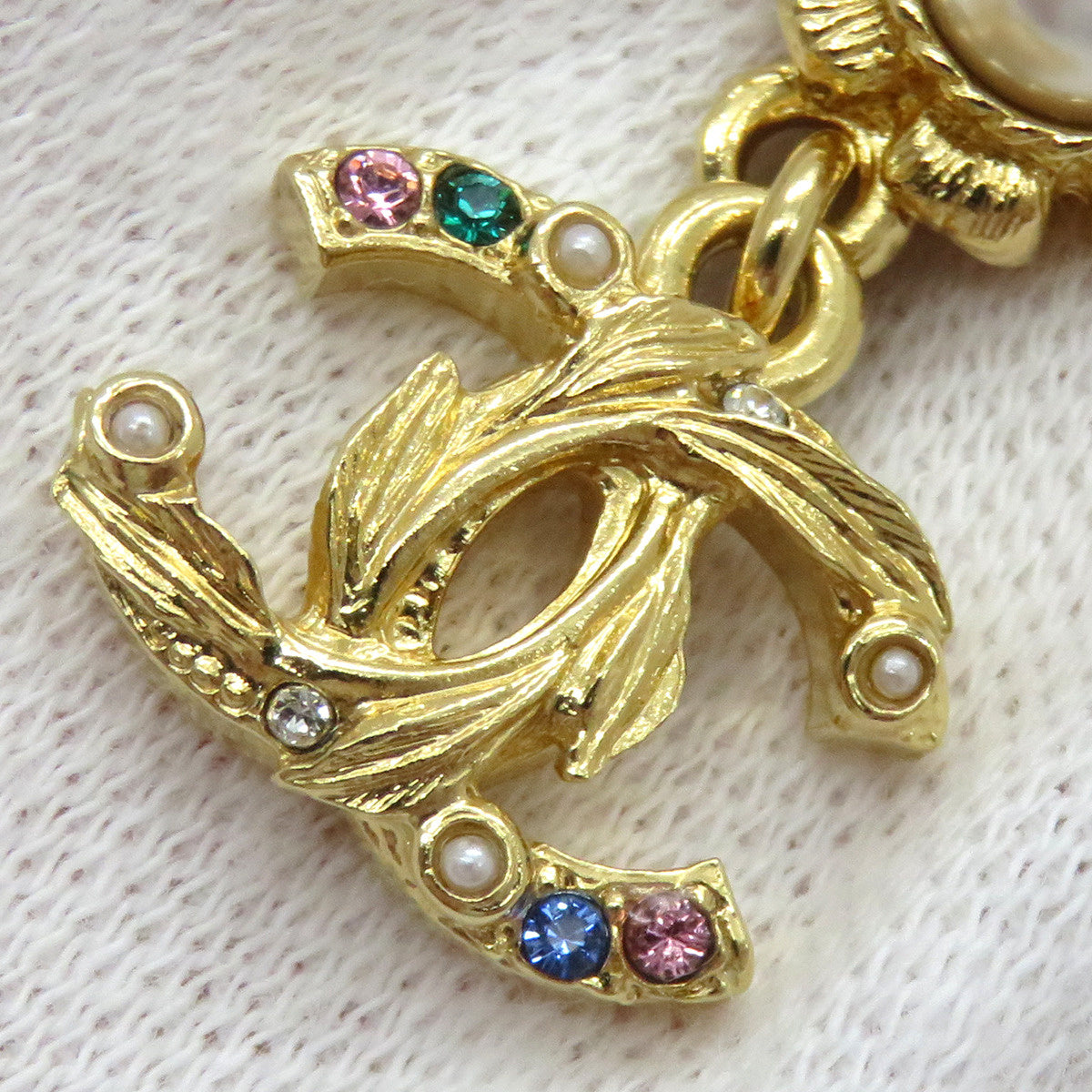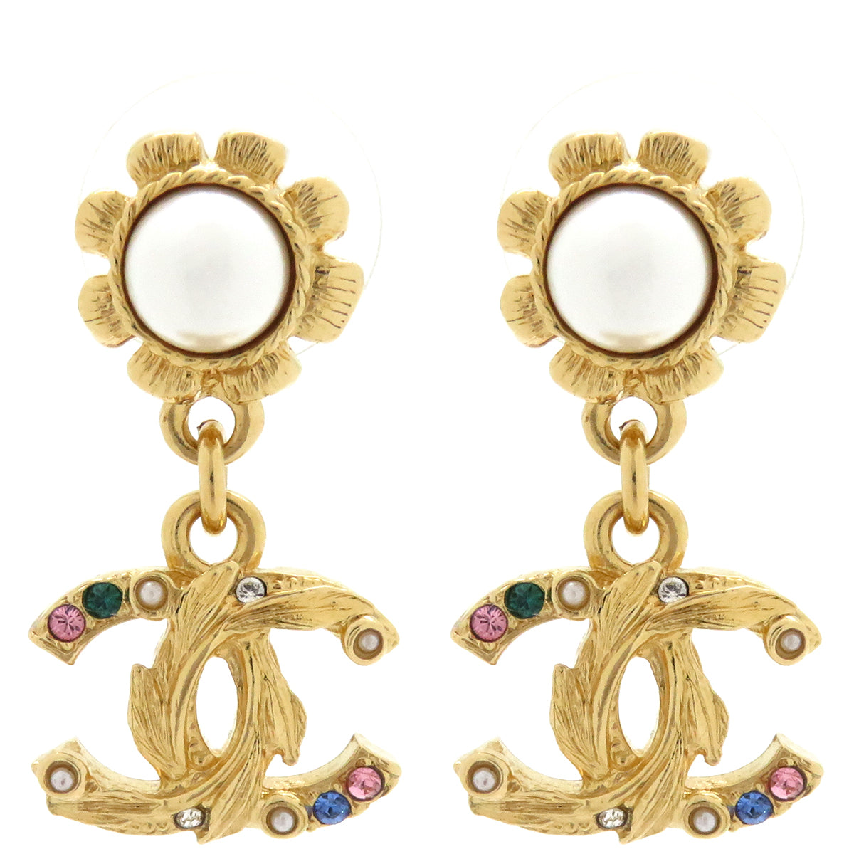 シャネル CHANEL ココマーク カラーストーン ゴールド GP フェイクパール ピアス CCマーク
