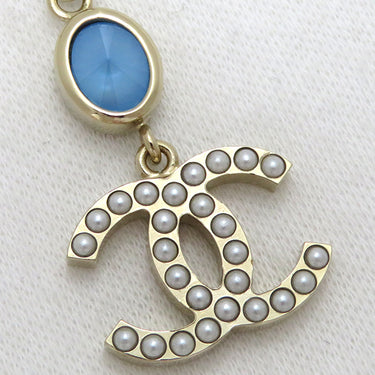 シャネル CHANEL ココマーク スイングネックレス ブルーXゴールド GP フェイクパール カラーストーン ネックレス オーバルストーン