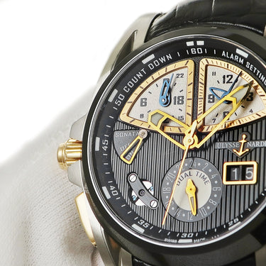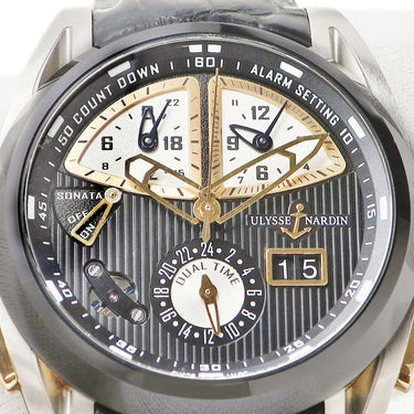 ユリスナルダン ULYSSE NARDIN ソナタ ストリームライン 675-00 自動巻き メンズ OH済 チタン×K18RG×セラミック アラーム